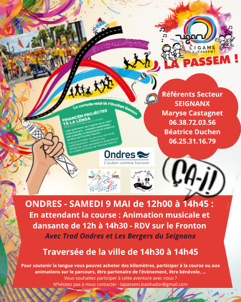 La course relais pour la langue occitane traverse notre commune le samedi 9 mai, avec un moment convivial et festif autour de la culture gasconne.